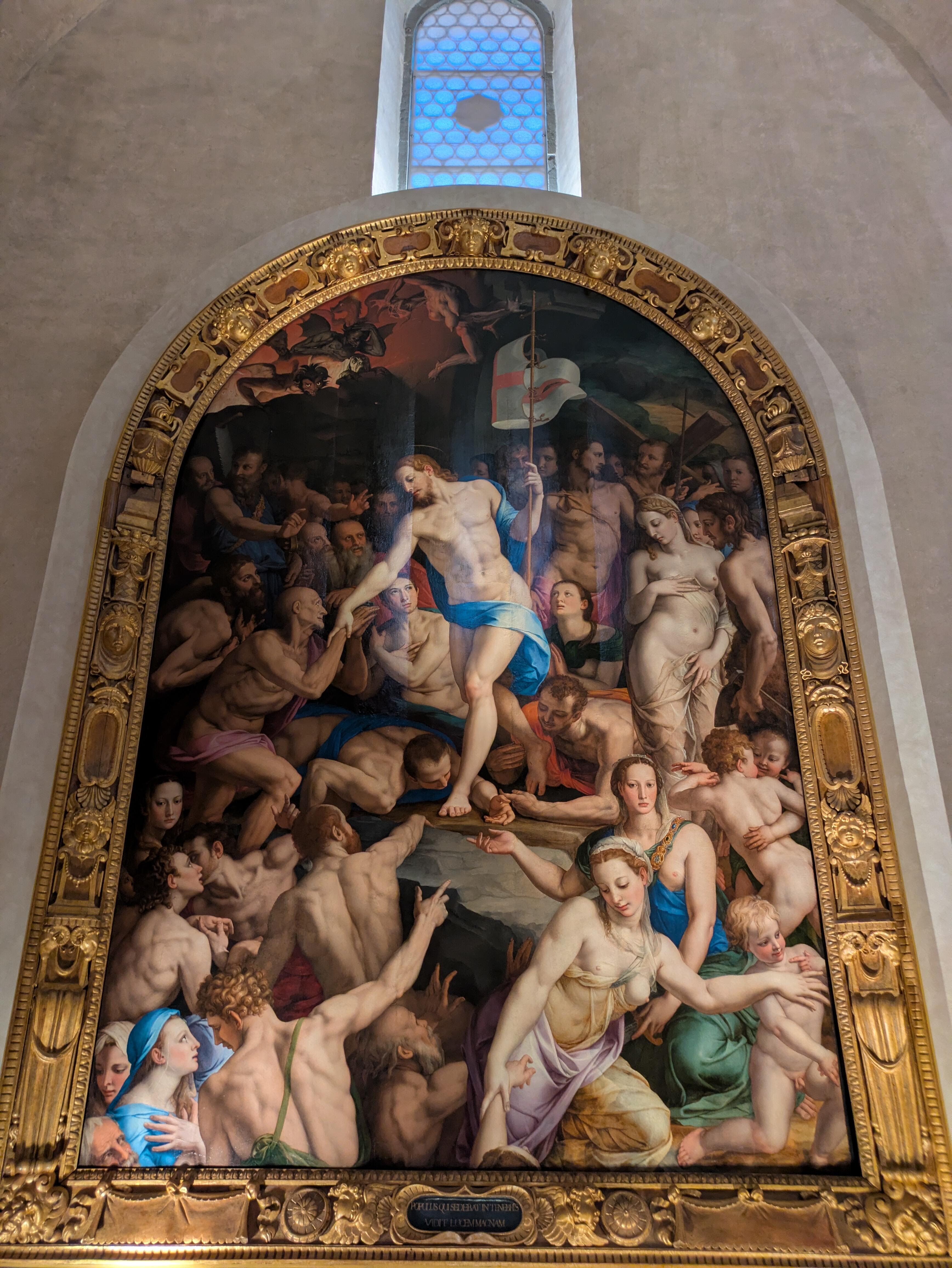 La Descente du Christ aux Limbes, chef-d’œuvre maniériste de Bronzino exposé dans la nef, illustre l’instant où le Christ vient libérer les âmes des justes. Je trouve même que cette œuvre dégage une certaine charge érotique !