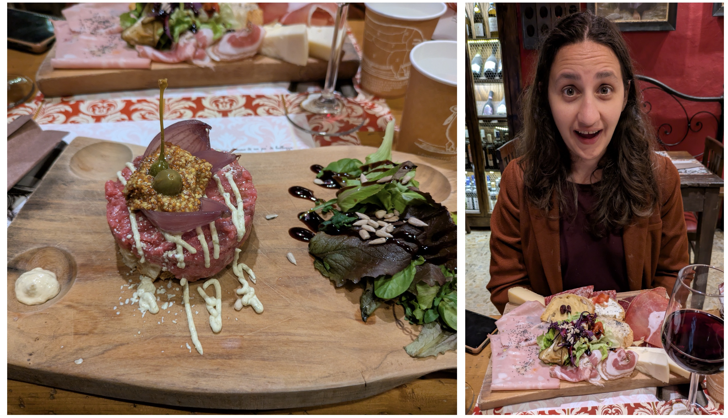 Le soir, on a savouré un excellent repas dans une prosciutteria, un type de bar à vin italien spécialisé dans le jambon cru, et plus particulièrement le prosciutto. On s’est régalés !