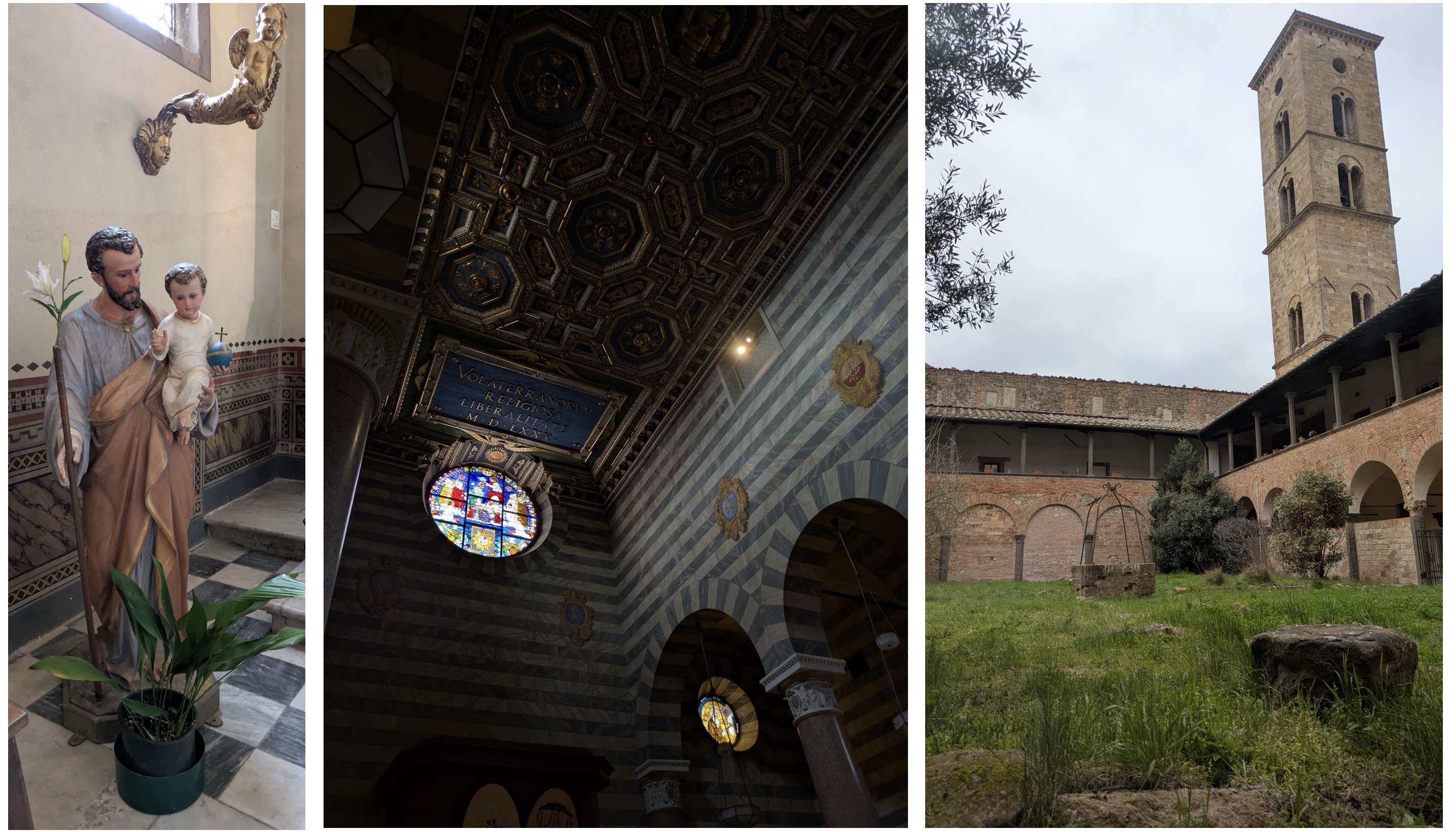 La cathédrale Santa Maria Assunta de Volterra combine la sobriété de sa façade romane à l’éclat de son plafond Renaissance, avec un cloître paisible. Et bien sûr, notre bon saint François n’est pas loin dans les parages !