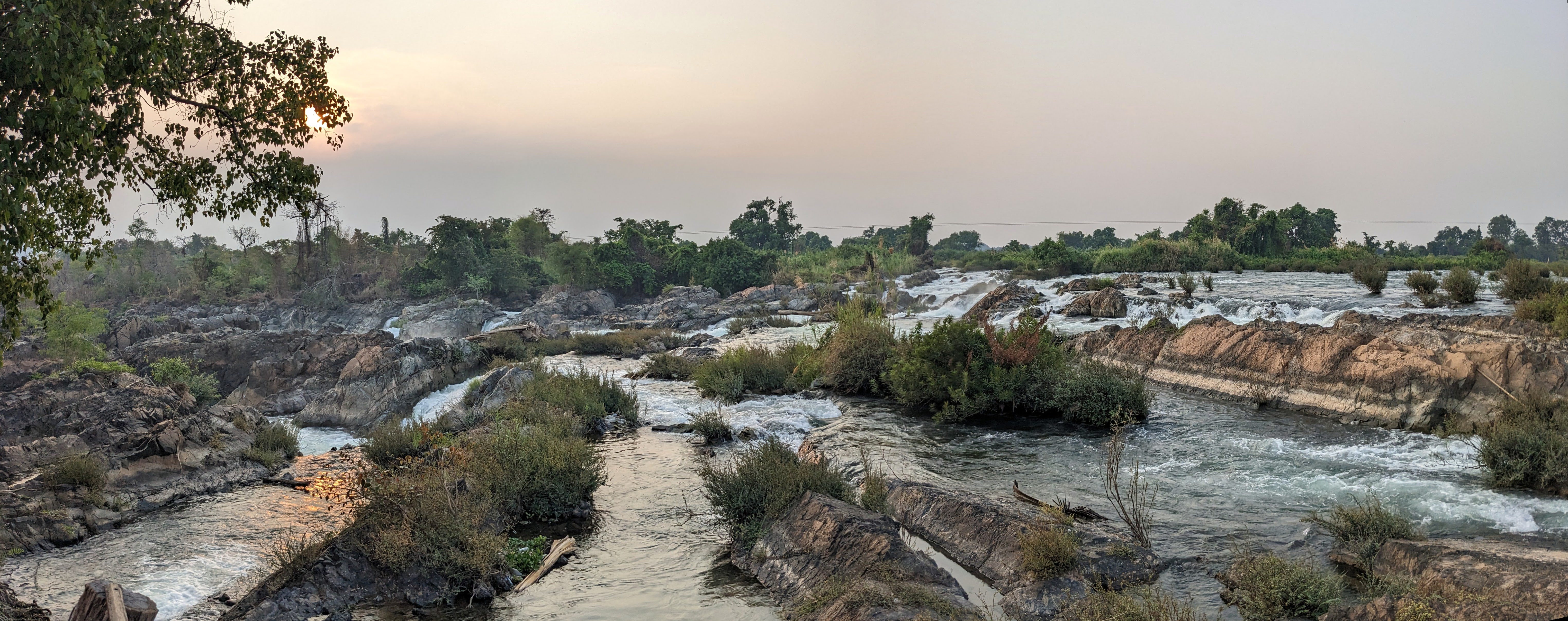 Even though Laos is the only Southasian country without seaside, it’s most southern district is called Si Phan Don (4000 Islands) because the Mekong River here forms this beautifully structured islands. There are 3-4 big islands where people live, the rest are too small to be inhabited.