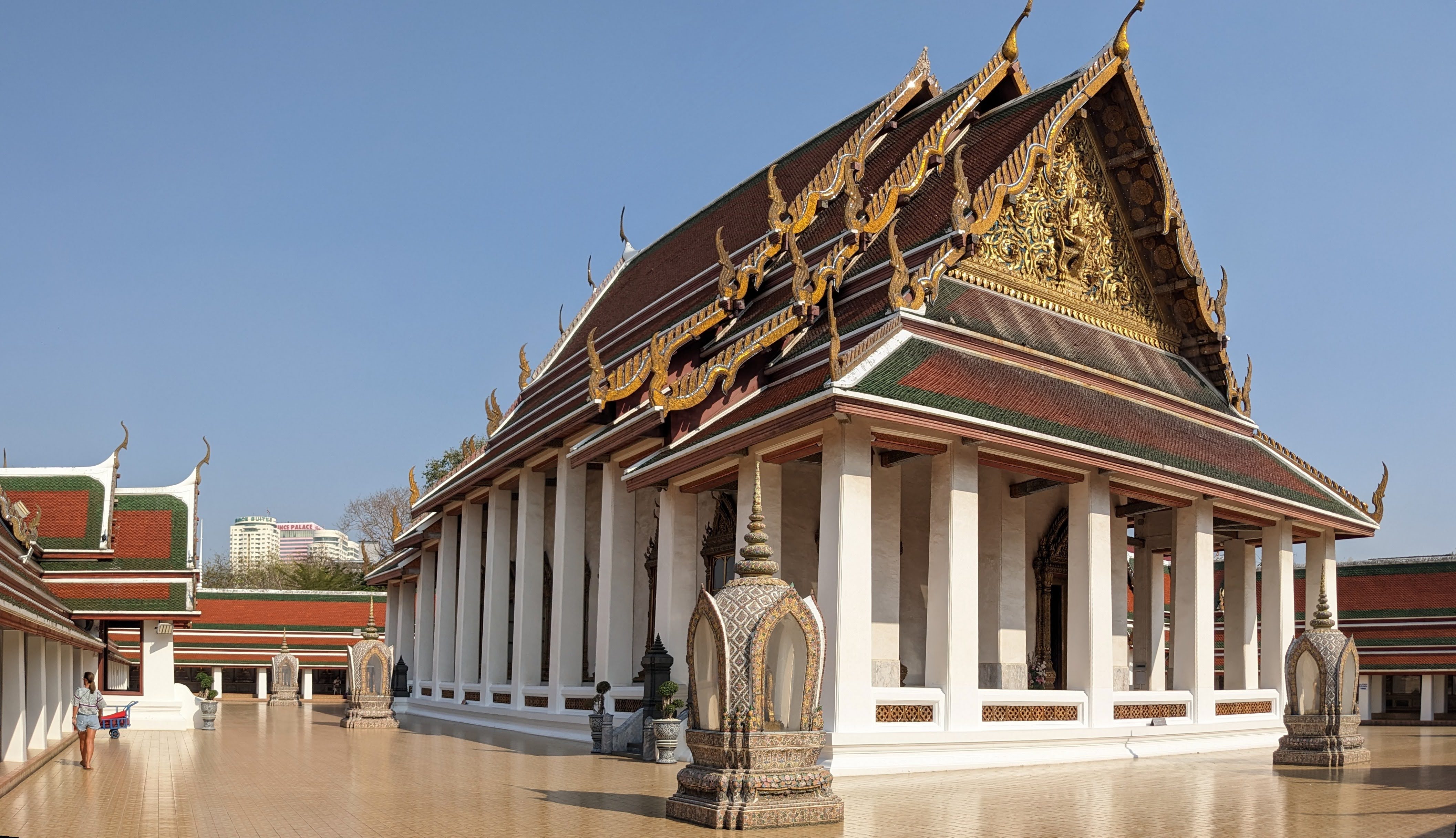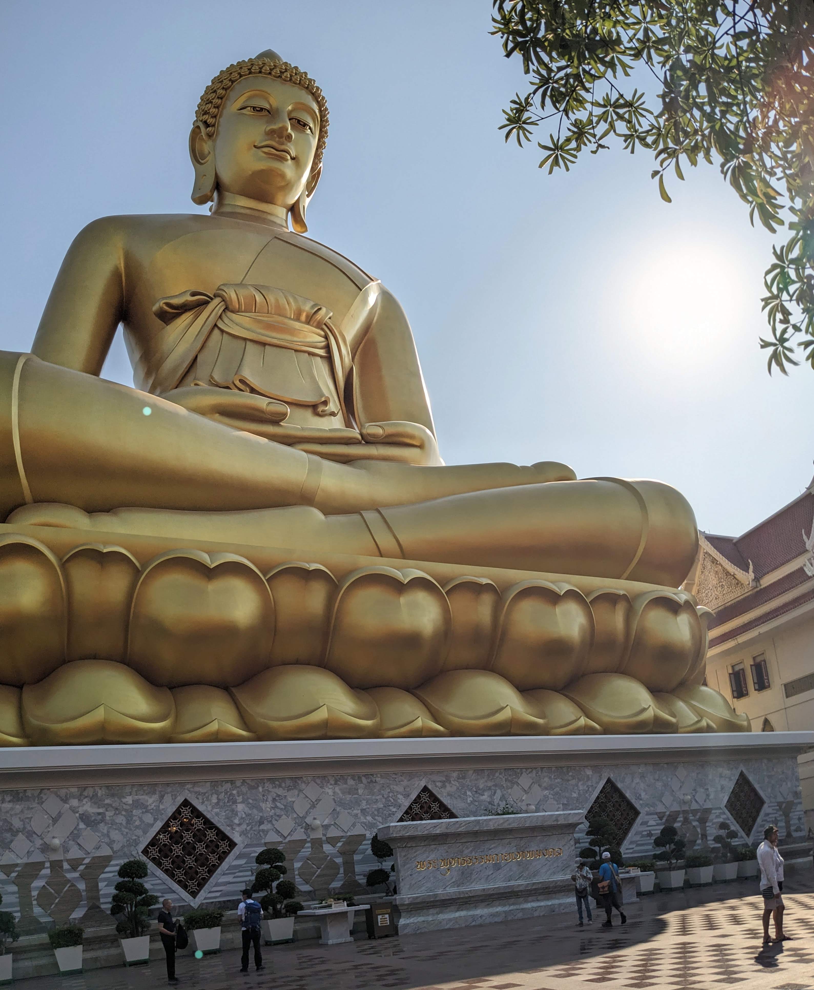The temple has several structures and buildings, including the Phra Buddha Dhammakāya Thepmongkhon, built in 2017. This statue, being 69 meters tall and 40 meters wide, is the biggest in the whole city. The material the image is made of is pure bronze, making the image the first of its kind in the world. That was quite an impressive sight!