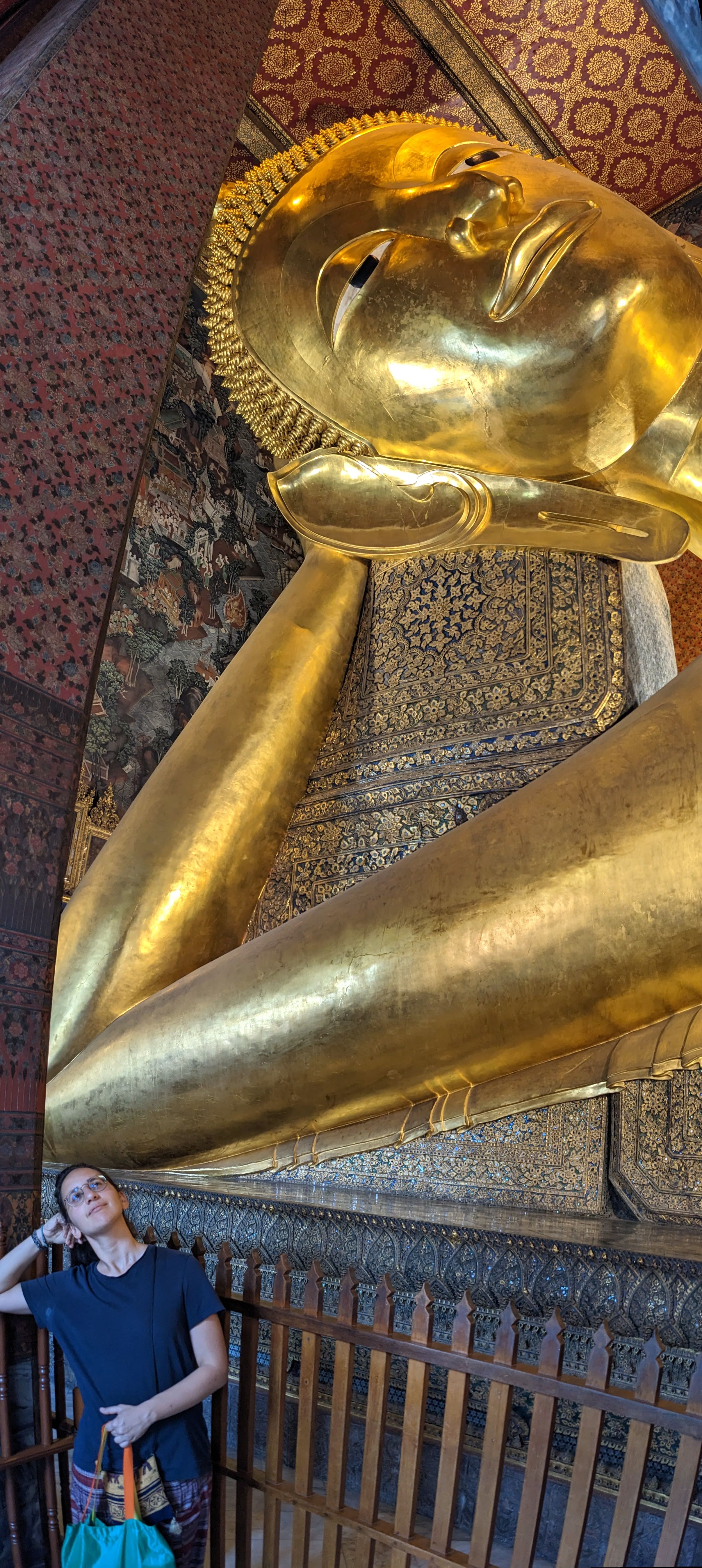 The most famous part of this site is a 46m long reclining Buddha covered in gold, we were astonished by its length!