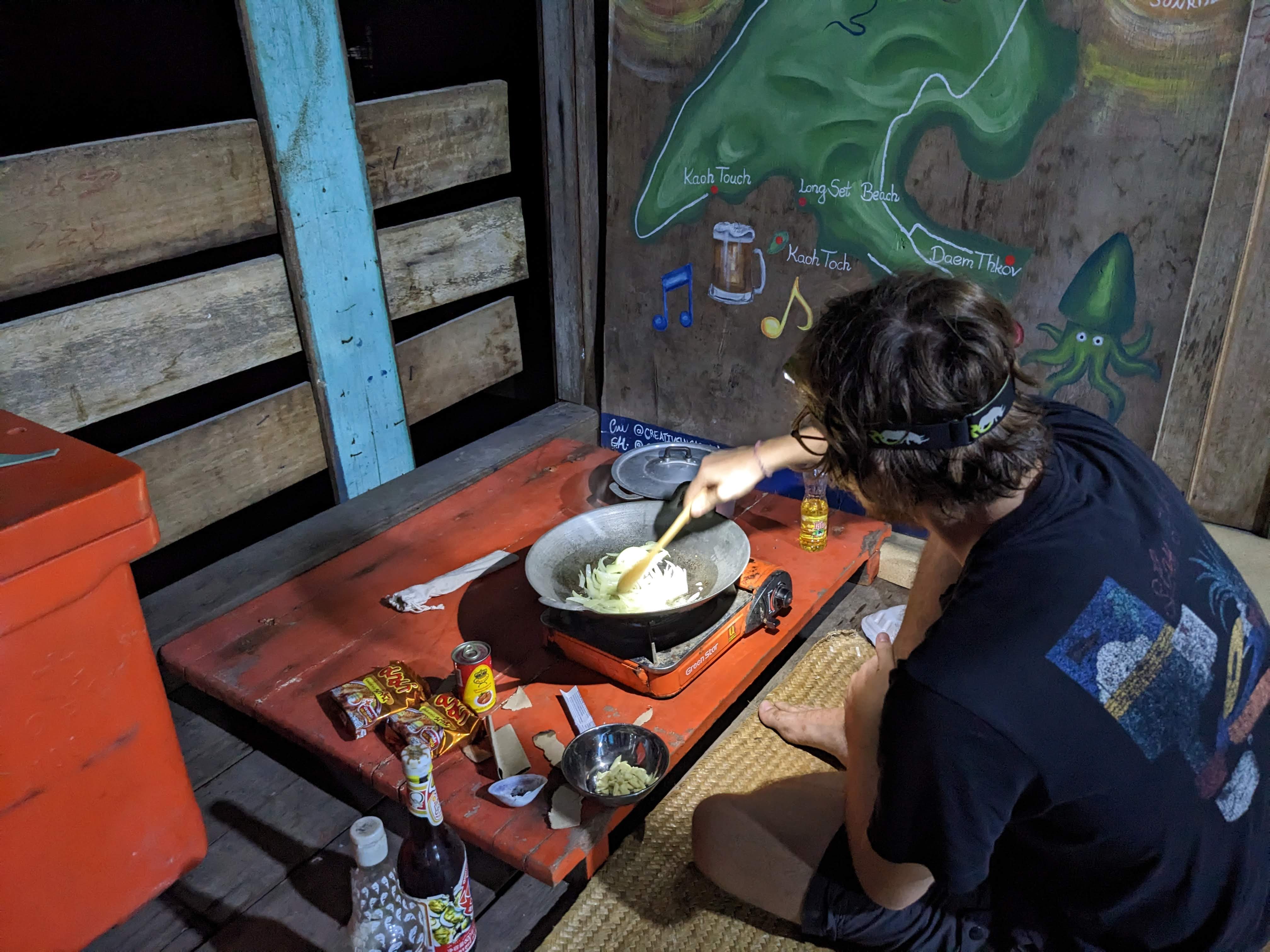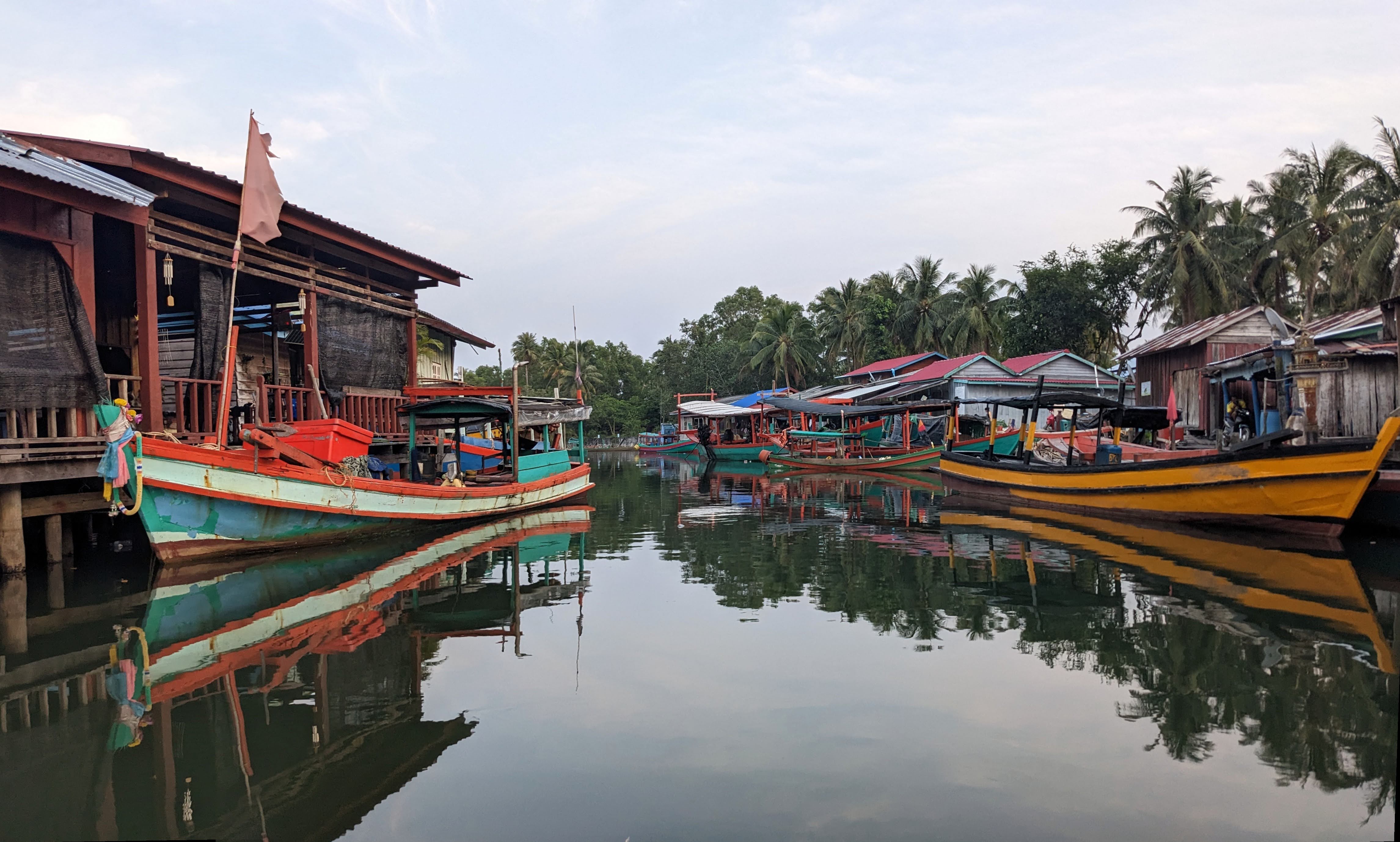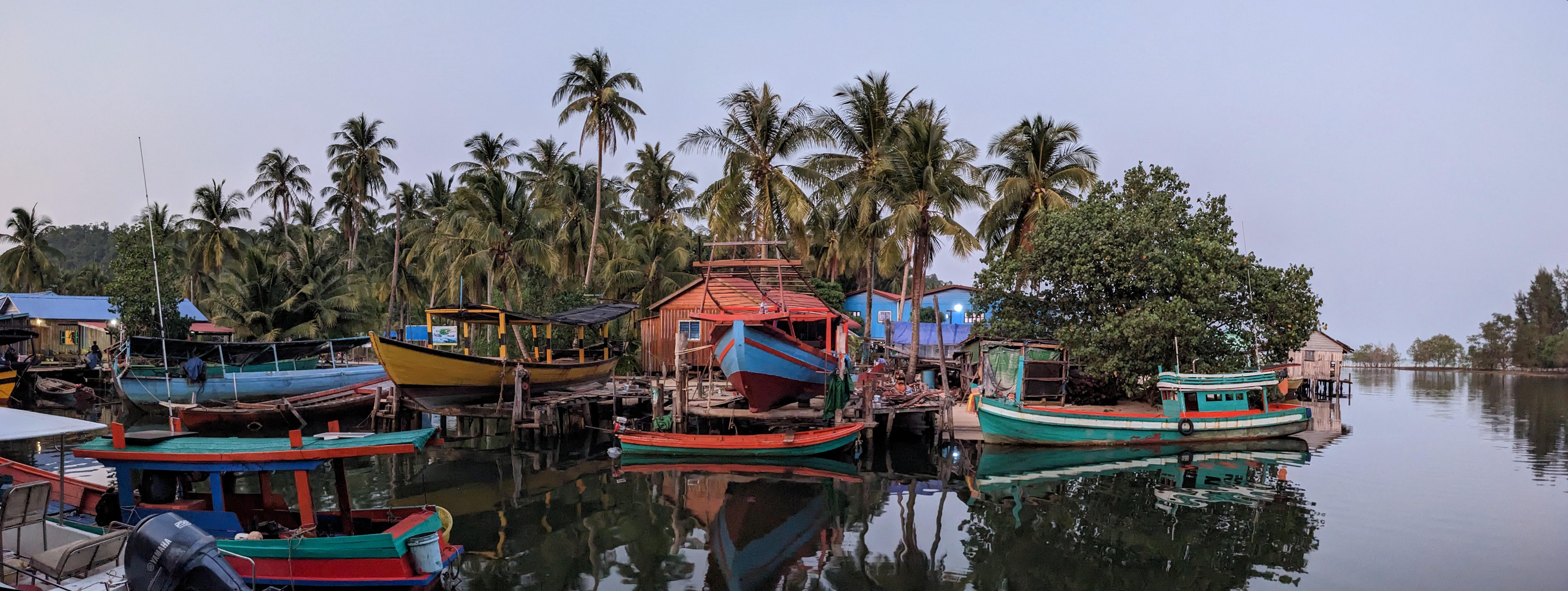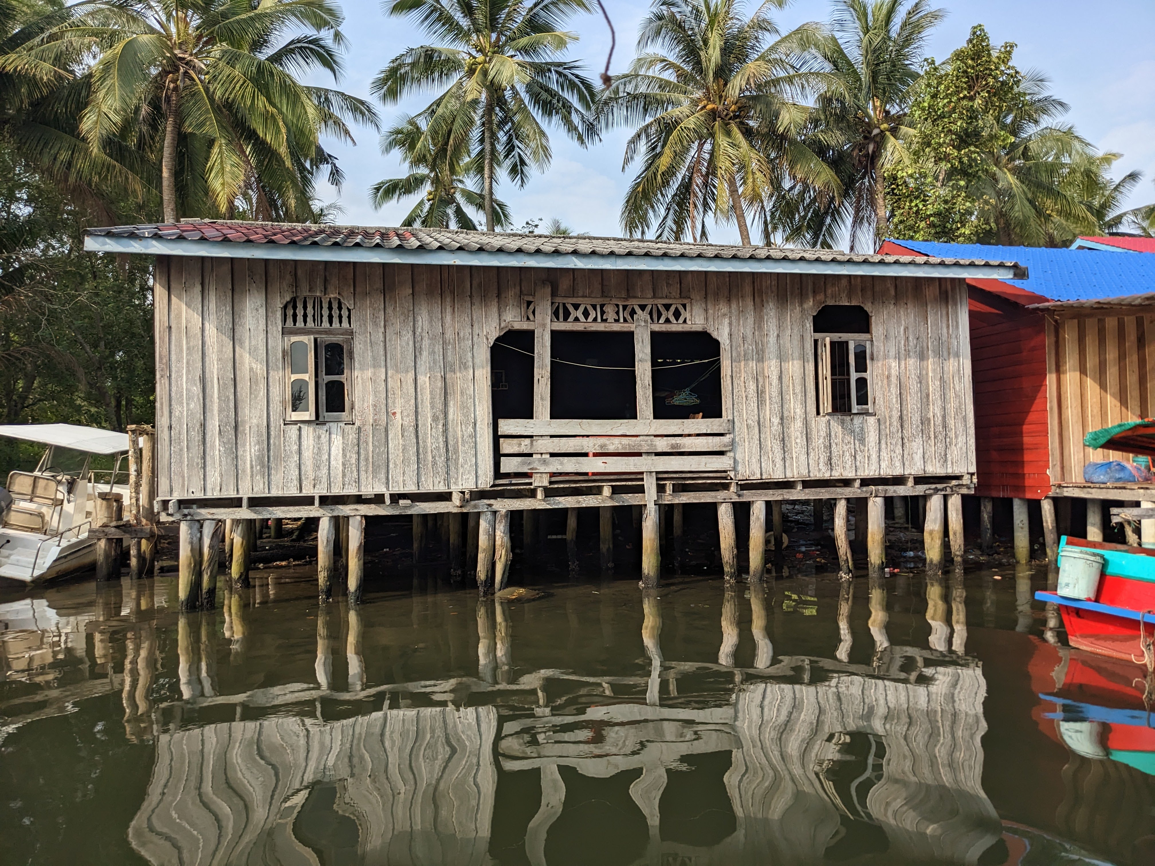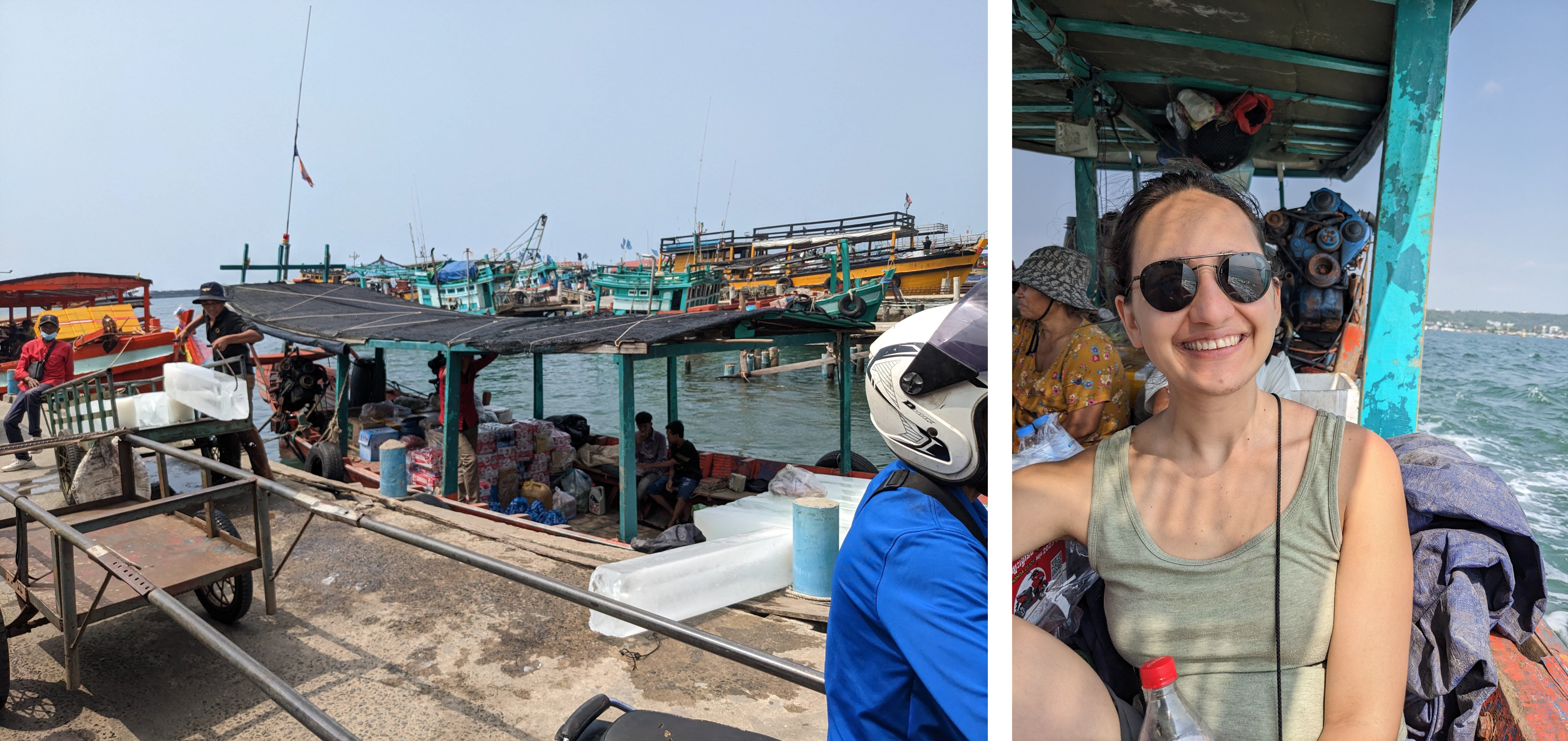 From Sihanoukville, we took the supply boat that carries food, drinks, fuel, motorbikes and people to the island, making several stops on the way.