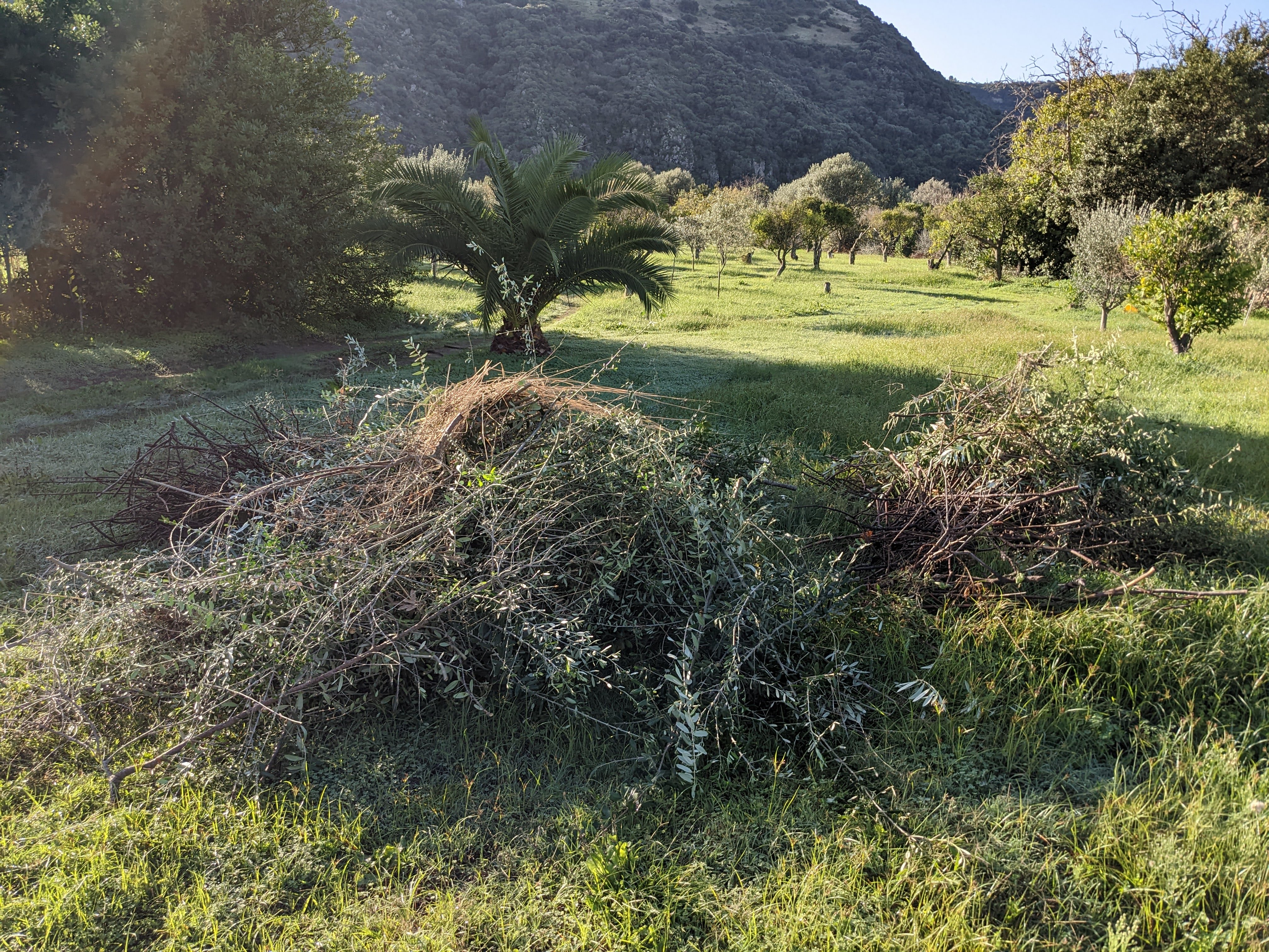 Cleaning up the gathered olives from big branches