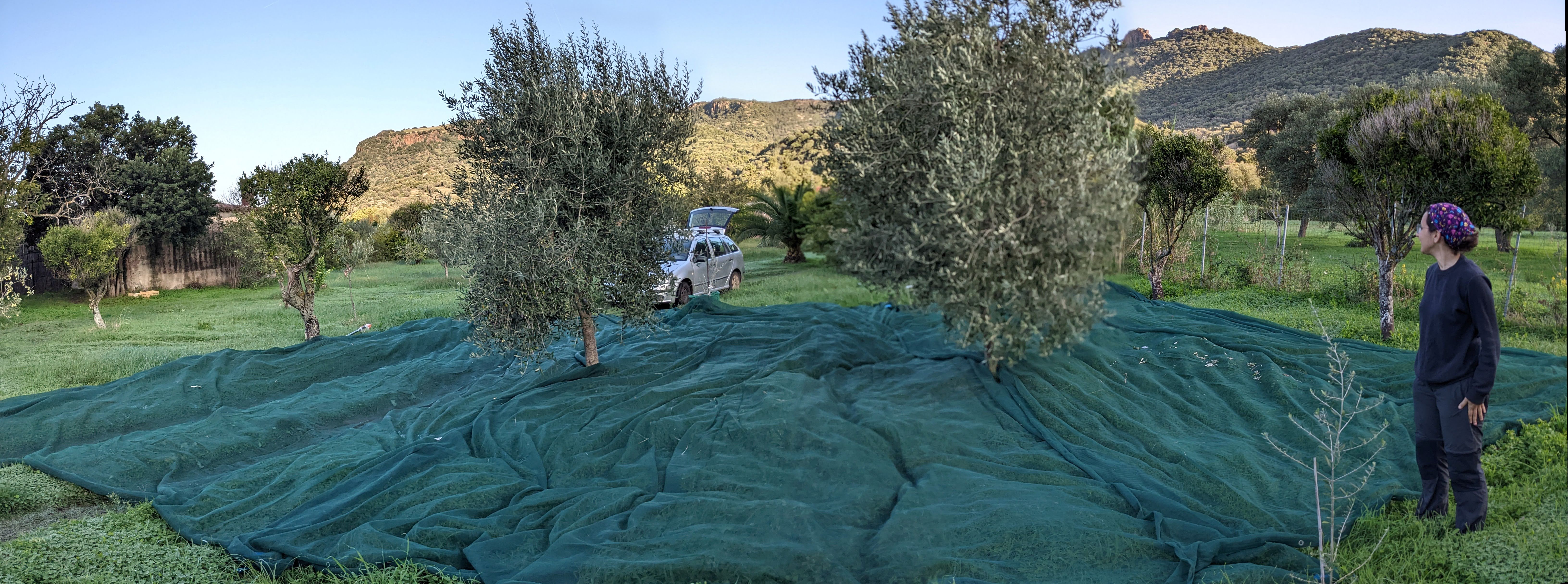 Large nets to lay underneath the trees while harvesting to collect the olives