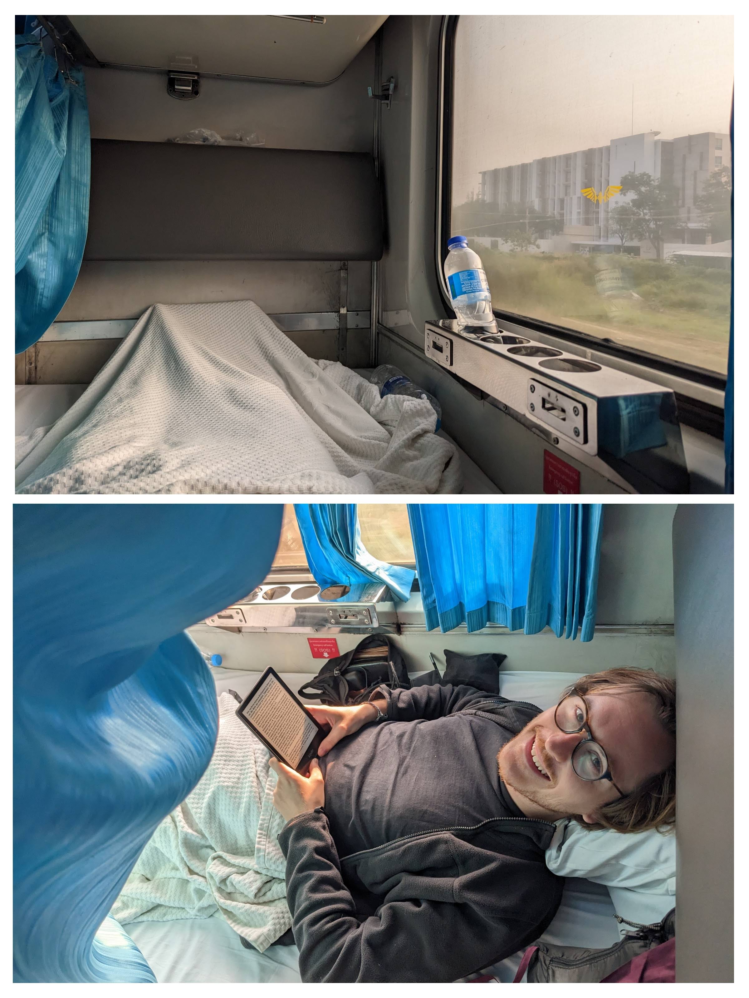 Different from European night trains, the beds are not in the compartments but everyone sleeps in the same wagon, yet it feels more isolated due to personal curtains for each bed. And the beds were in the direction of the train, which is felt easier to sleep in.