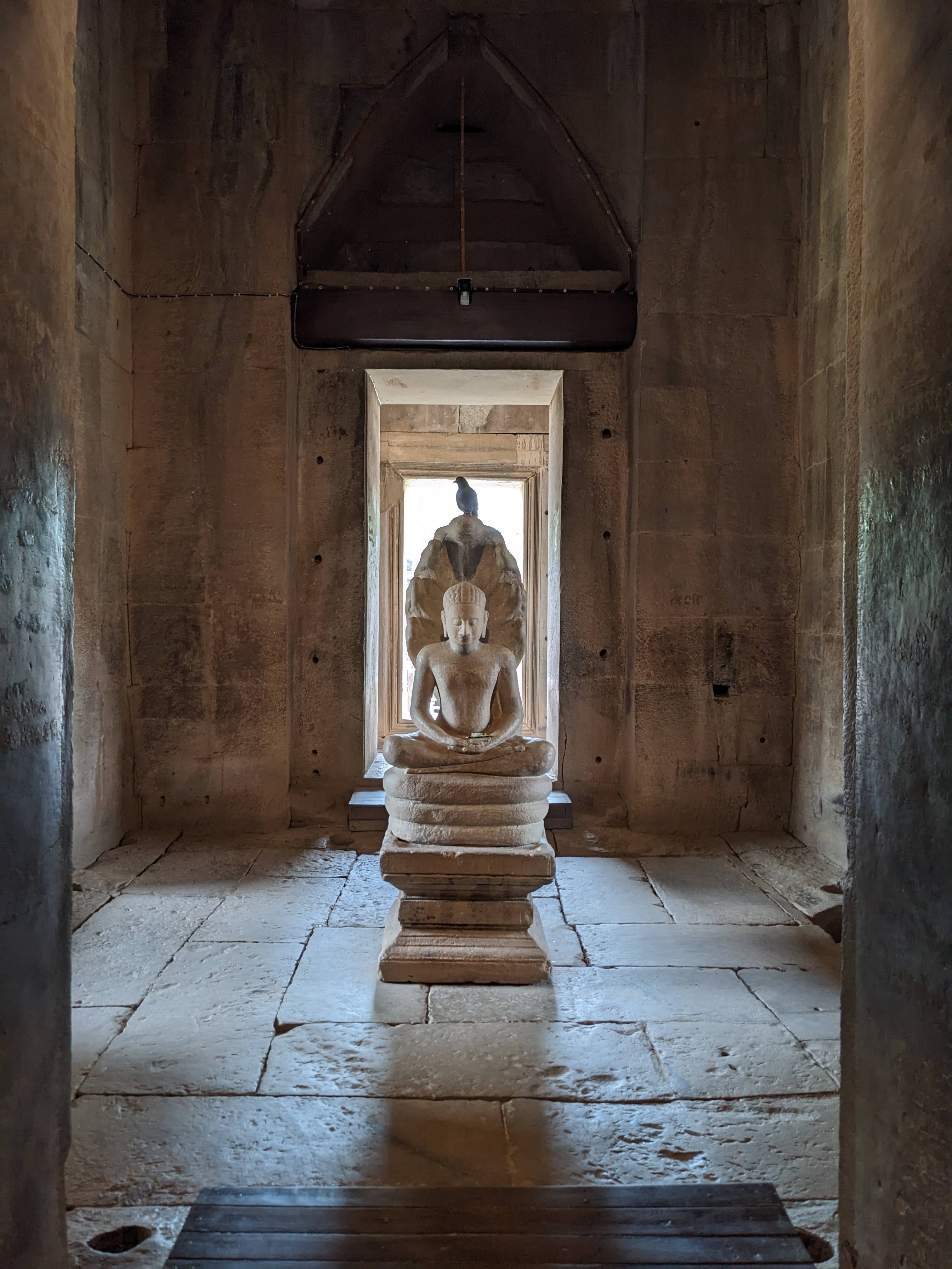 Inside the main pagoda can be found the statue of that king. A pigeon is now having a good rest on it away from the heat of the sun: