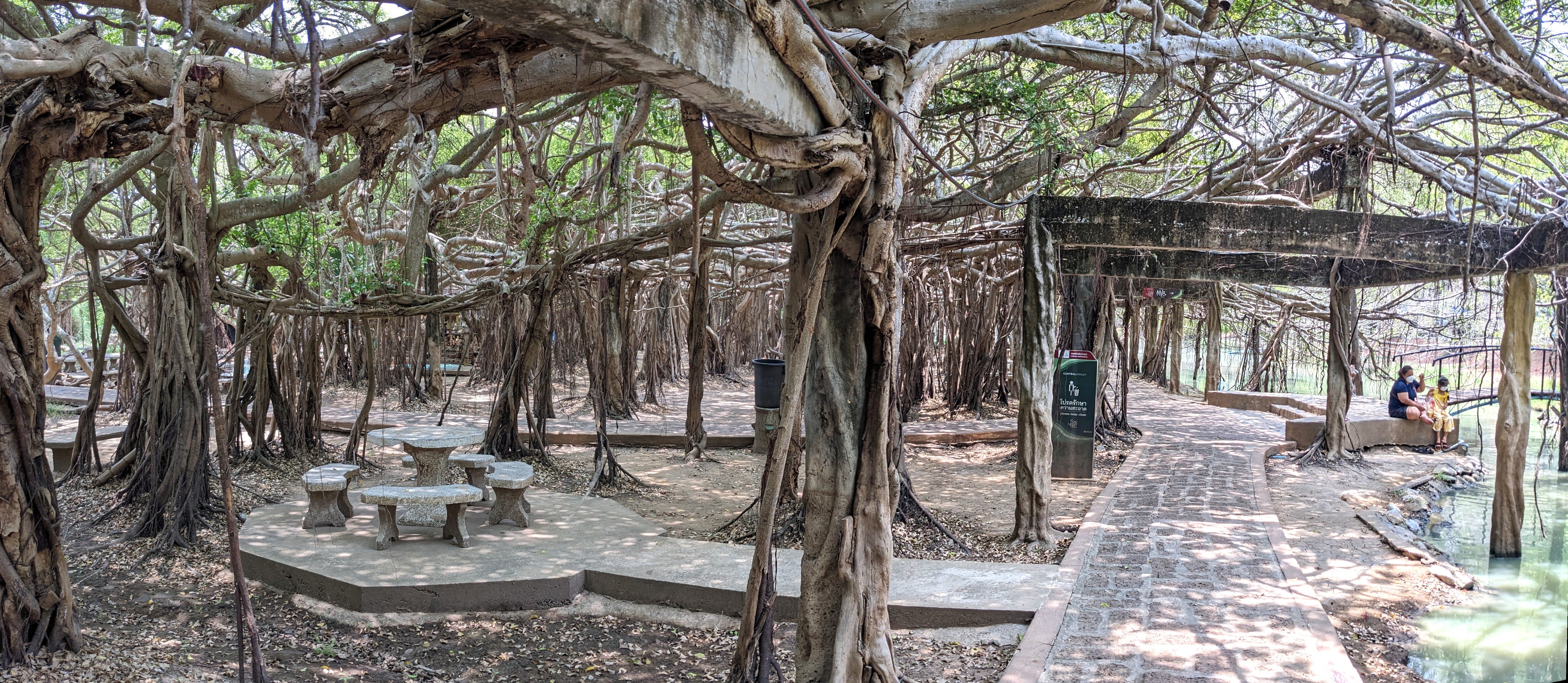 We also stopped by Sai Ngam, near an ancient reservoir built by the Khmer. It is Thailand’s largest banyan tree, and it is… huge. A banyan tree is a fig tree that grows on another tree or structure and has roots that hang down and take root wherever they touch the ground. So what you see in this picture is a whole single tree!