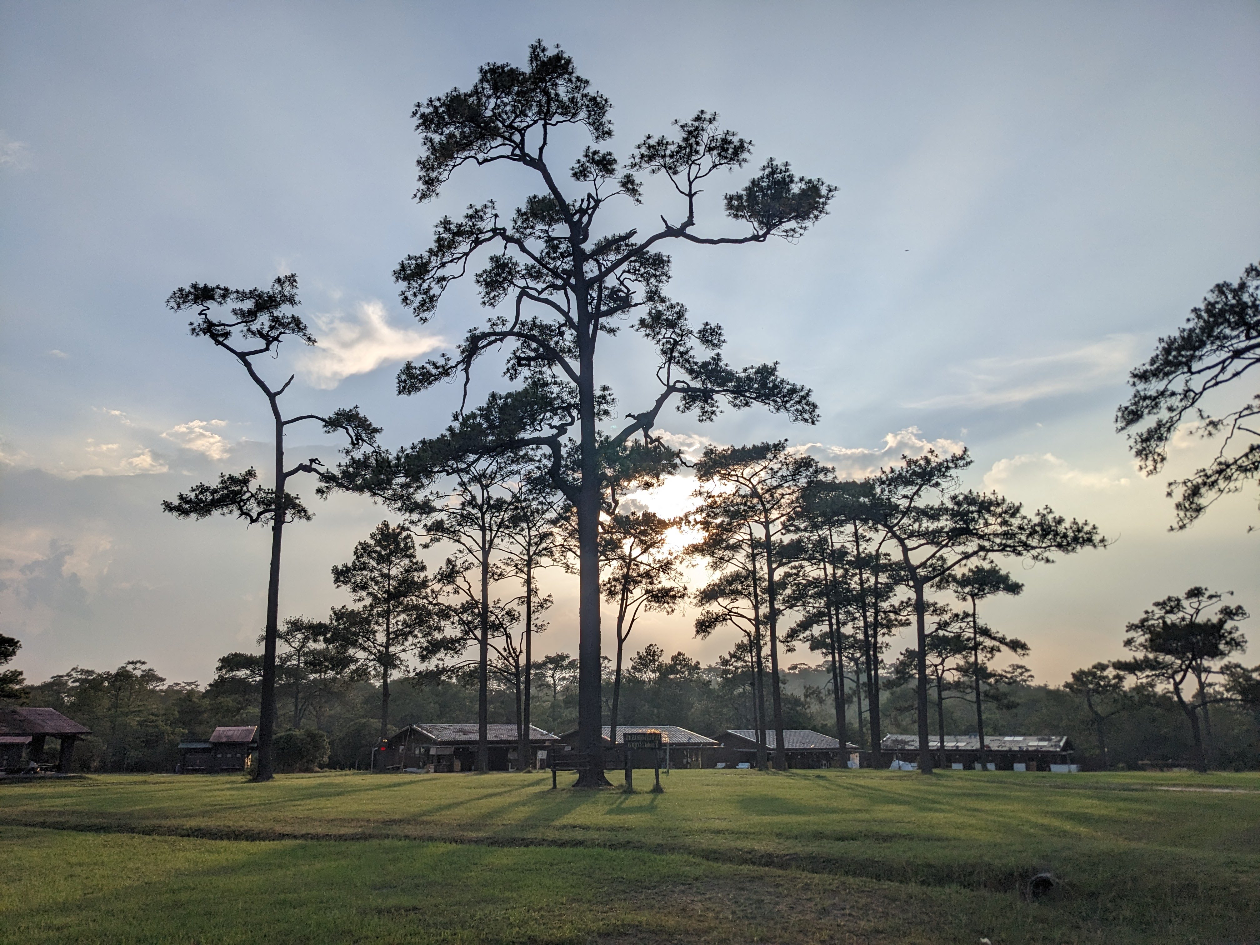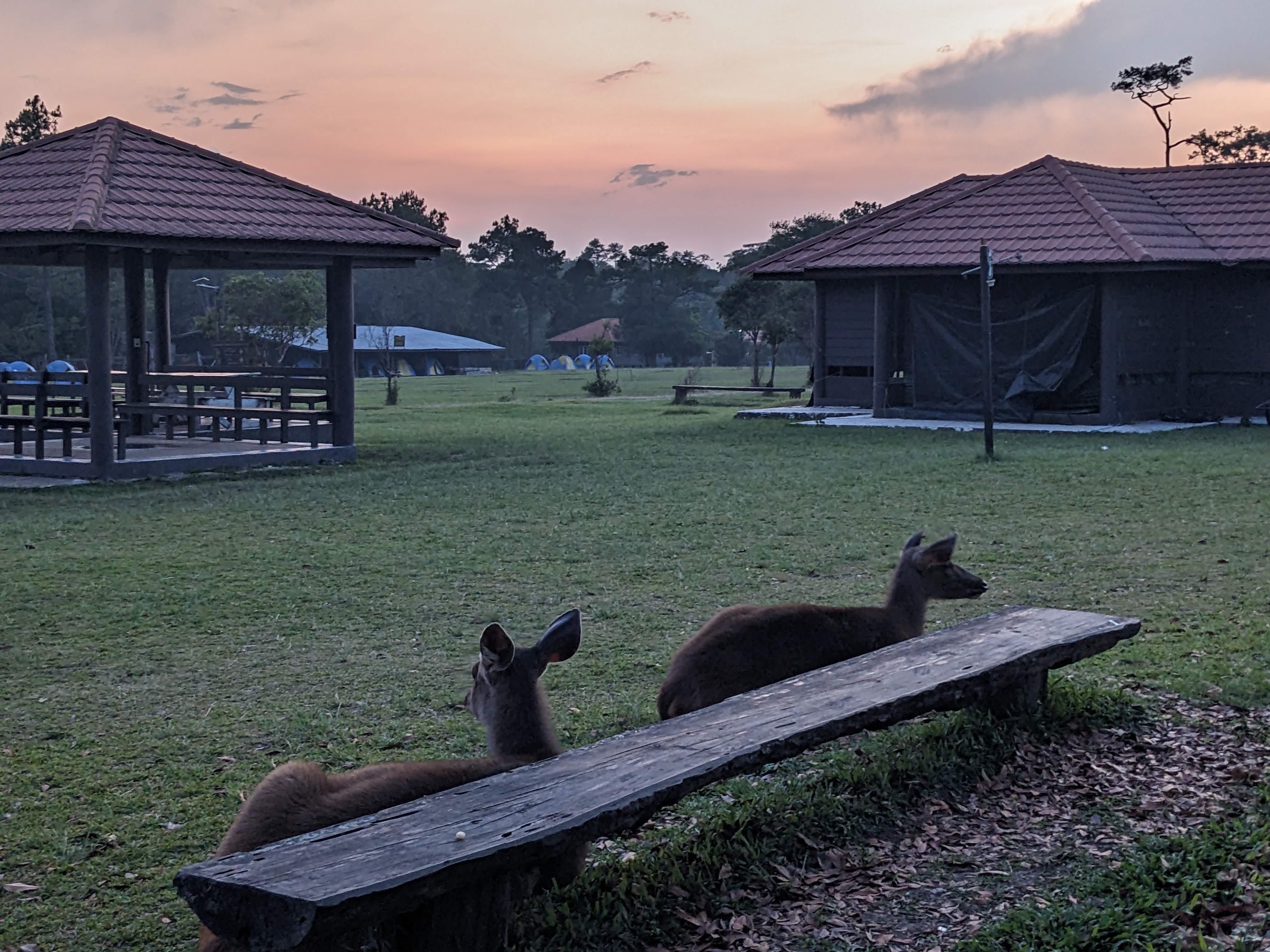 After a couple of hours of intense hiking, we reached a plateau and then joined the visitor centre after a 3km walk, there we could rent a tent with all the necessary gear. The camping zone was peaceful, and had large open fields with some trees: