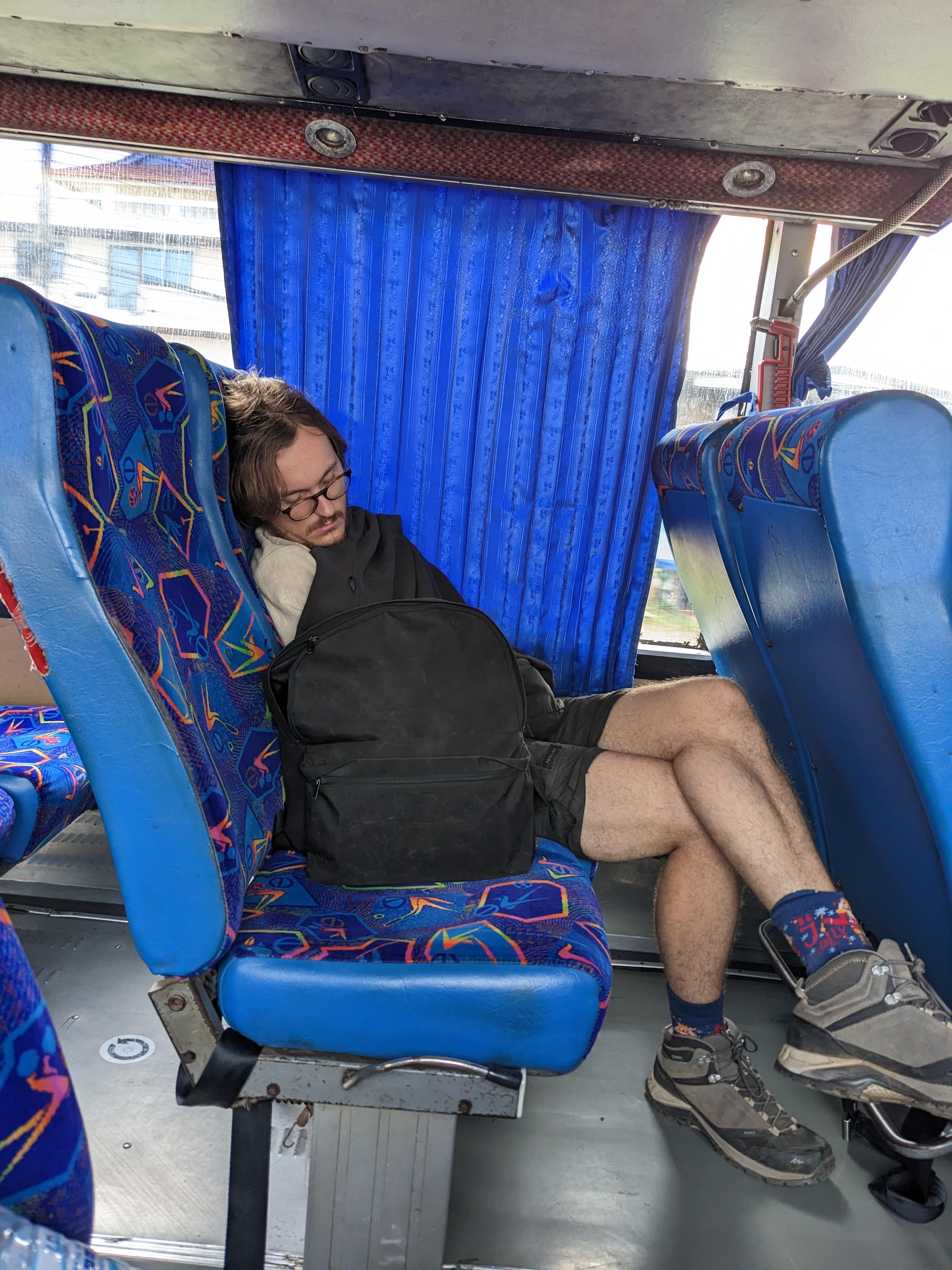 Such heights had to be climbed, that is why we decided to take a very early morning bus from the nearby town, as you can see Louis was finishing his sleep there: