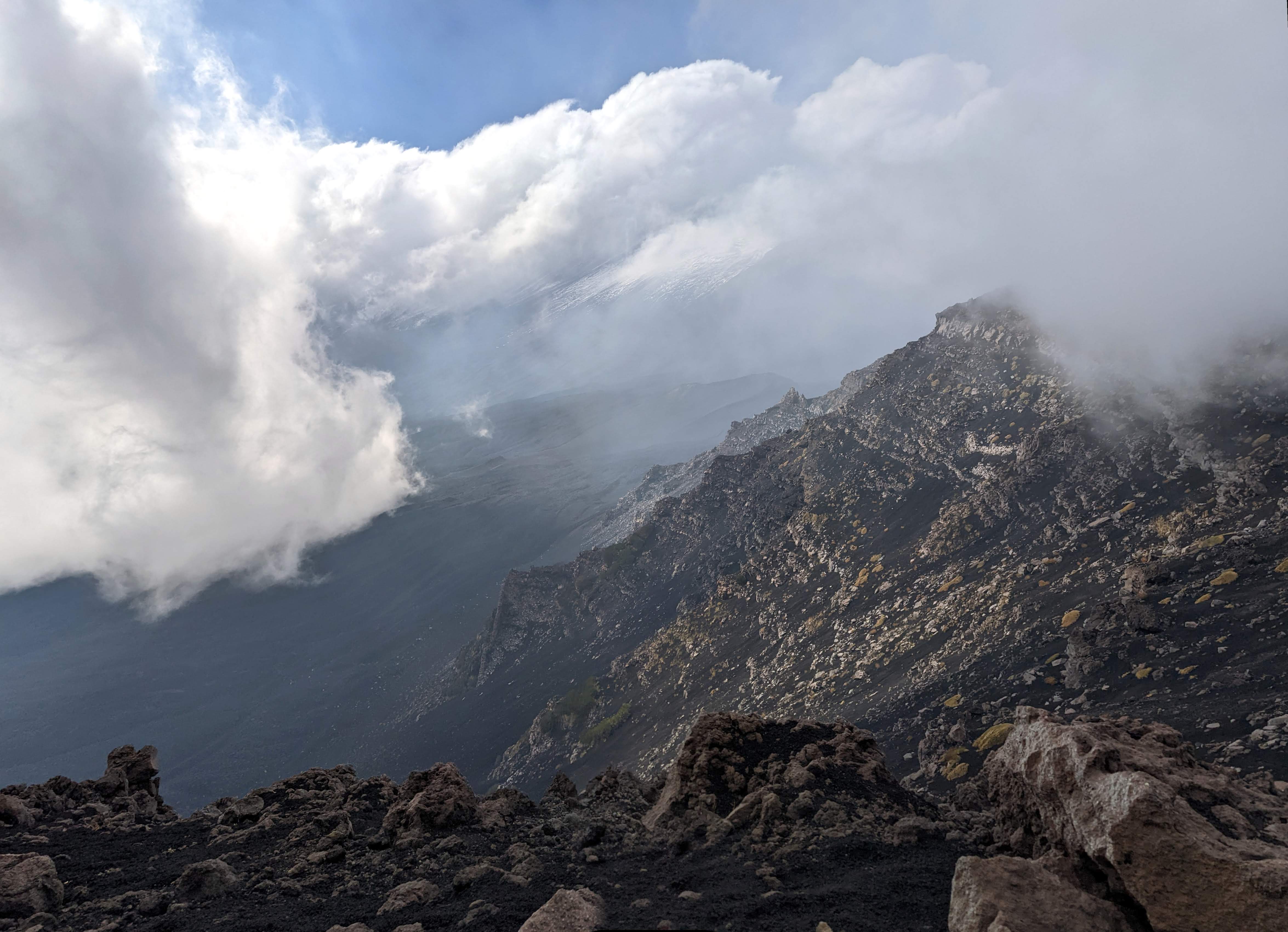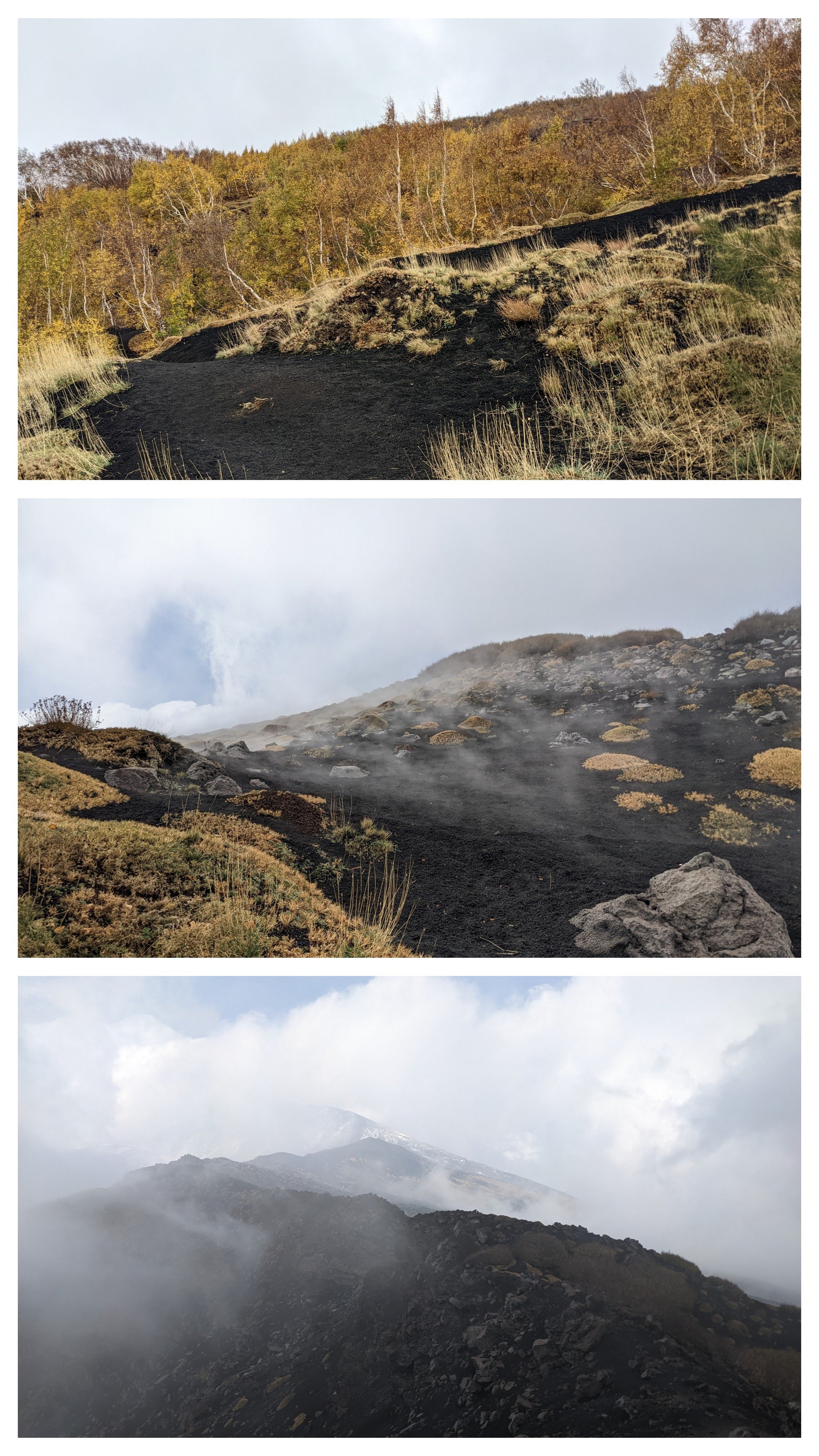 We had weather-wise a bit bad luck in Etna, and being cheap people, didn’t pay for the cable car but went up to 2100 m from the other side of the mountain, upon suggestion from Mario.