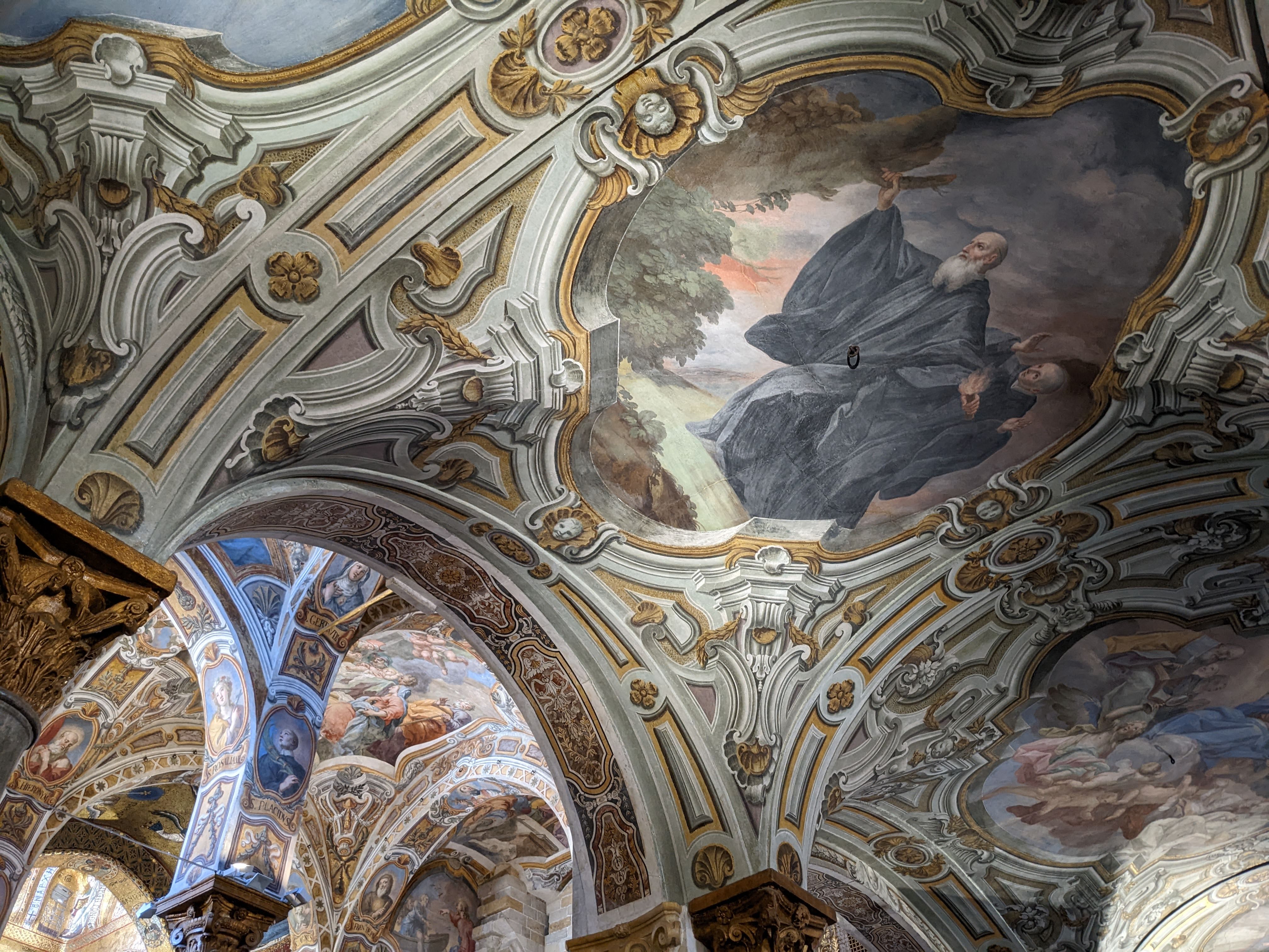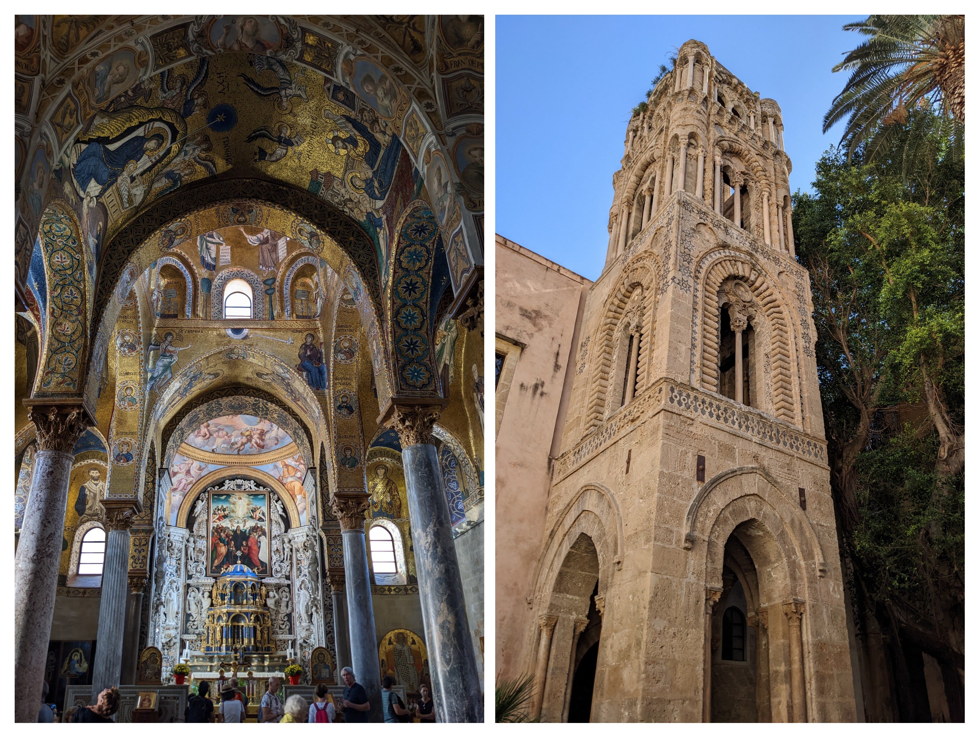 Back in Palermo, we found this small church which also had interesting mosaic of influences, with its Baroque facade, its Romanesque belltower and its Byzantine dome! Inside can also be found some Arabic inscriptions.