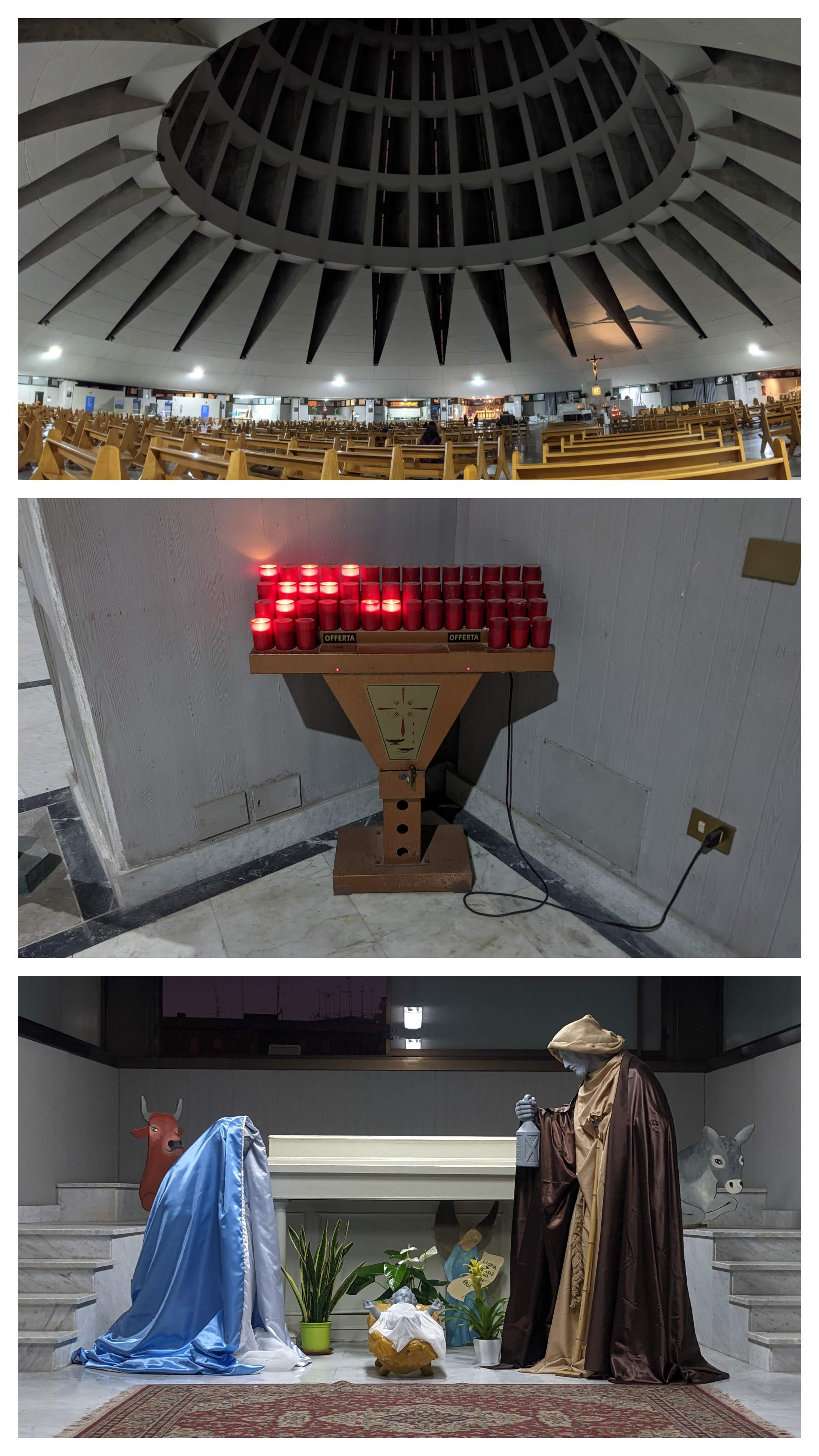 Another (weird?) symbol of the city is a post-modern church, which looks like what scientologists would choose as a temple. It feels just cold and honestly very far away from any other church we have visited. The most absurd fact is that this gigantic edifice has been built (by French architects!) to celebrate a miracle that happened in 1953, when a family claimed that their statuette of Marie started releasing tear drops at several occasions. This has been officially recognised by the church as being a real miracle, but there is also an Italian chemist that reproduced the phenomenon on a similar effigy of Marie by injecting salty water in it. So did all of this started from a trickery?
